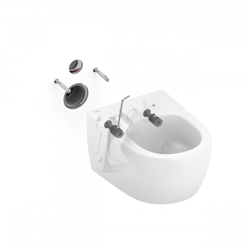 - Paslėpti keramikos tvirtinimo prie sienos varžtai ir vandens jungtys